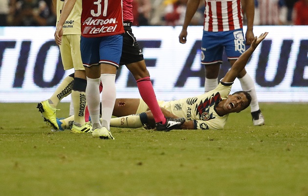 Dos Santos sufrió una herida en el cuádriceps de la pierna derecha luego de una entrada del zaguero de Chivas, Antonio Briseño, en el clásico nacional por la 12da fecha del torneo Apertura local.