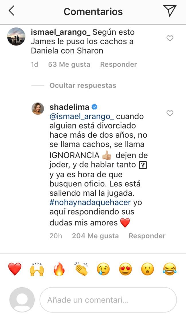 El usuario con nombre ismael_arango le escribió a De Lima: "según esto James le puso los cachos a Daniel con Sharon.