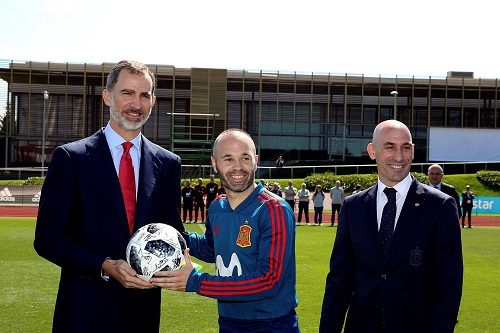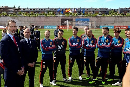 Los internacionales han tenido una mañana intensa de actos, el más destacado la visita del rey Felipe VI, quien ha deseado lo mejor y los mayores éxitos a Lopetegui y sus hombres en un acto al que acudió también el nuevo ministro de Cultura y Deporte, Maxim Huerta.