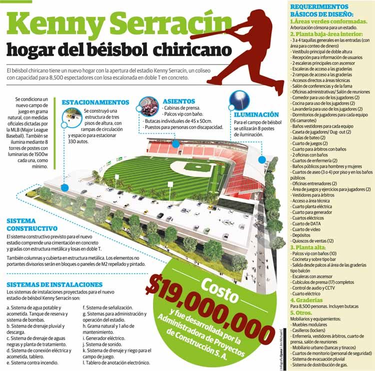 El estadio Kenny Serracín, que lleva este nombre por un destacado pelotero de la provincia de Chiriquí, tuvo un costo de 19 millones de dólares.