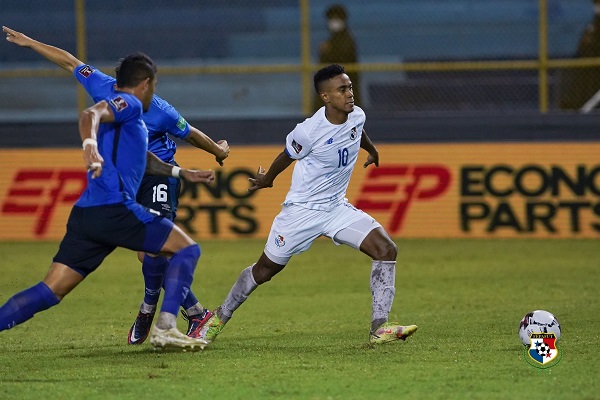 Édgar Yoel Bárcenas (10) conduce el balón en el juego contra El Salvador. Foto:Fepafut