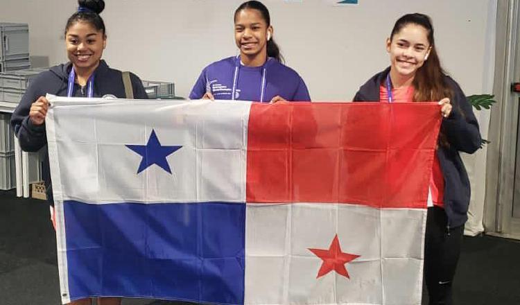 Hillary Heron, Karla Navas y Lana Herrera, miembros del equipo de gimnasia de Panamá.