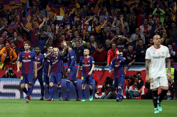 El doblete de Luis Suárez y los goles de Andrés Iniesta, Lionel Messi y Philipe Coutinho, permitieron al Barcelona vencer al Sevilla y superar su mejor registro en una final: en 1922 ganó 5-1 al Real Unión.