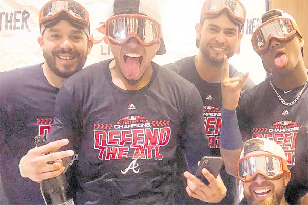Los Bravos de Atlanta ganaron ayer el título de la División Este de la Liga Nacional. El panameño Johan Camargo se dio un buen baño de champán.
