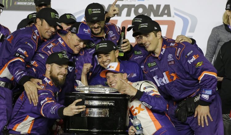 Denny Hamlin ganó ayer las 500 Millas de Daytona por segunda vez en cuatro años y lideró un 1-2-3 del equipo Joe Gibbs Racing en la máxima carrera de la Nascar.