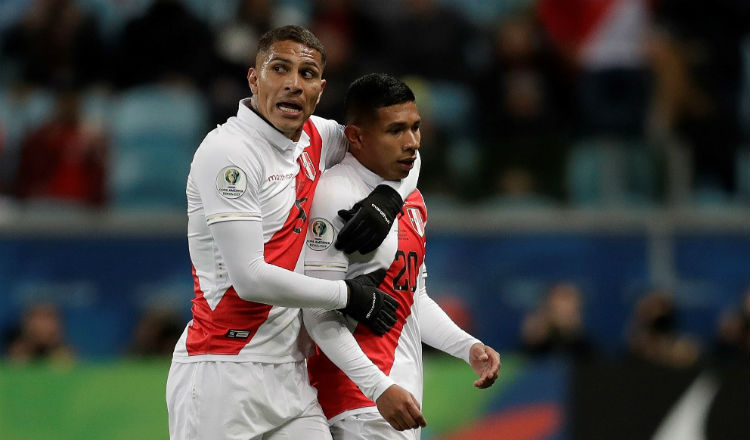 Paolo Guerrero junto a Flores, autor del primer gol contra Chile. Foto EFE