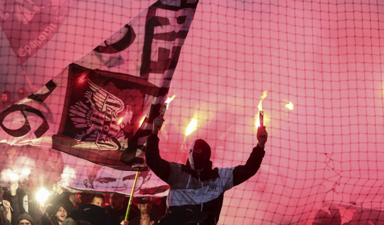En la celebración los seguidores del conjunto griego provocaron un infierno de bengalas que tiñó el estadio.