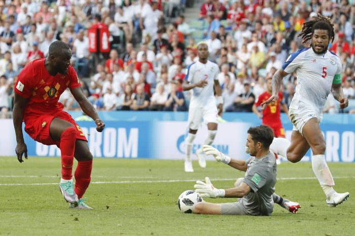 Jaime Penedo retiene un remante del belga Romelu Lukaku. Foto AP