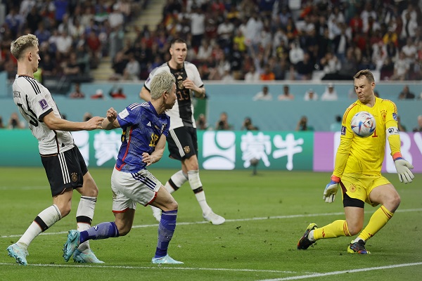 Dos jugadores salidos del banquillo, Ritsu Doan y Takuma Asano, firmaron el segundo gran bombazo del Mundial de Qatar 2022 al protagonizar la remontada de Japón contra Alemania, a la que superó por 1-2 en el estadio Khalifa International.