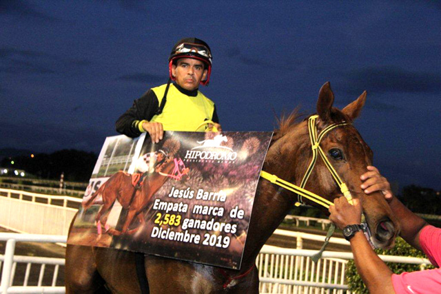 Barría igualó el registro de 2,583 éxitos que mantiene vigente Manuel Ortega, quien colgó las botas en 2006, tras 30 años de campaña. Ortega actuó en el Hipódromo Presidente Remón desde 1978.