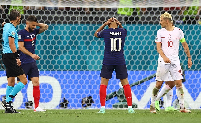 El público esperaba mucho más de Francia, pues se proyectaban como el mejor plantel de la Eurocopa y sobre todo se esperaba más de Mbappé, que quedó debiendo y para hacer las cosas aún más lamentables, termino el torneo de la peor manera, pues el portero suizo Yann Sommer le detuvo el penal que decretó la eliminación de Francia en la tanda de penales de los octavos de final.