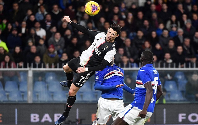 La racha goleadora de Cristiano Ronaldo continuó el miércoles, cuando el astro de la Juventus anotó el gol que significó el triunfo 2-1 ante la Sampdoria, con lo que los campeones defensores se ubicaron de nuevo en la cima de la Serie A.