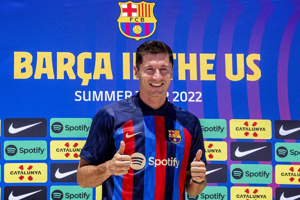 El polaco, que este lunes pasó, con éxito, el preceptivo reconocimiento médico en Miami, tuvo de esta forma su primer acto oficial como jugador del FC Barcelona, club que pagó al Bayern de Múnich 45 millones de euros más 5 en variables, y con una cláusula de rescisión de 500 millones de euros.