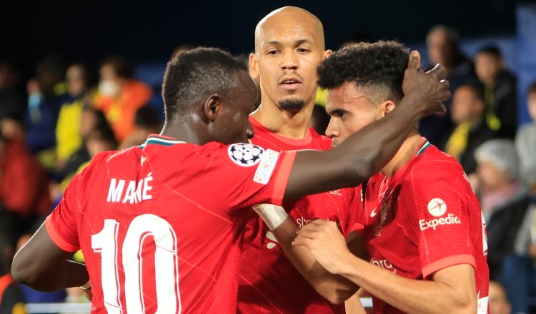 El delantero colombiano Luis Díaz del Liverpool (der.) celebra con sus compañeros tras marcar su gol ante el Villarreal Foto:EFE