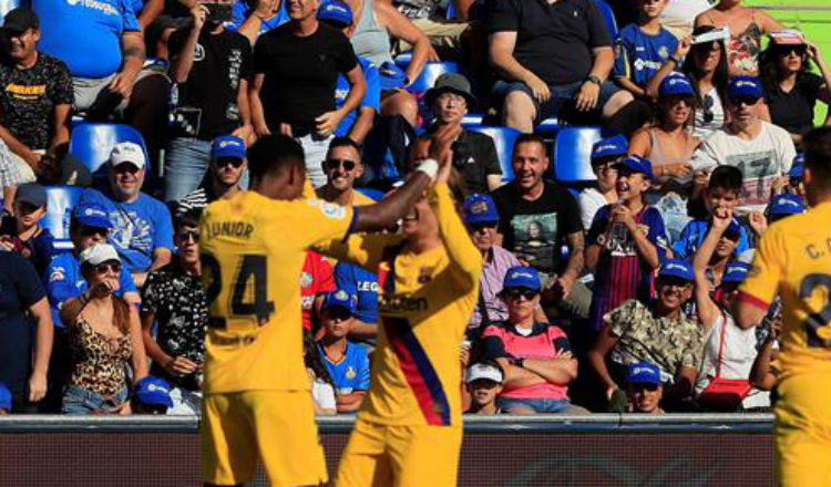 El lateral izquierdo azulgrana se redimió de su errática primera parte con una aparición oportuna. De nuevo, Soria no estuvo fino. El portero del Getafe no atajó un disparo de Carles Pérez desde fuera del área y el rechace lo aprovechó a placer Junior, que en esos momentos se paseaba dentro del área pequeña.