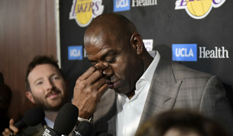 Magic Johnson no informó a la dueña Jeannie Buss ni al gerente general Rob Pelinka antes de anunciar su decisión frente a un grupo de reporteros