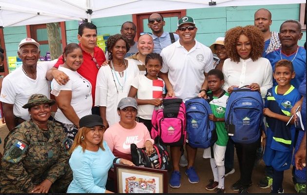 En la comunidad de Punta Alegre se beneficiaron unos 600 residentes, en una actividad donde el expelotero donó dos contenedores con comida seca, ropa, útiles escolares, entre otros artículos de primera necesidad.