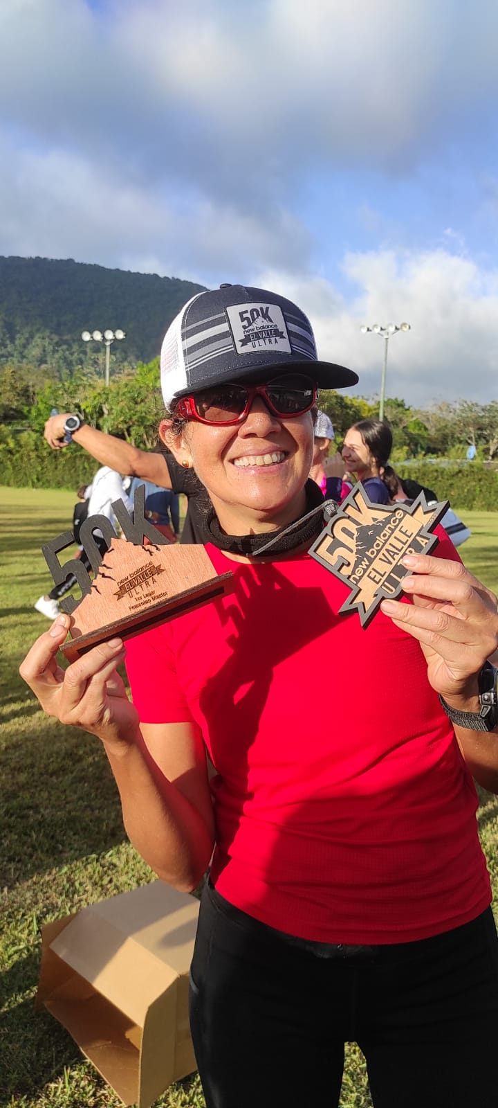 Después de eso relata Matilde Rojas “venían tres kilómetros de calles en el sector de Las Cuervas y tomabamos un sendero de trillo muy bonita con terreno columpioso y volvimos a la carretera de asfalto. Una carrera muy fuerte que requirió un exigente entreno con altimetría. Para muy fue difícil porque no soy una carredora veloz, pero en mi mente estaba pasar los cortes y llegué bien a la meta y eso significó mucha alegría y otra fue cuando te entregan un premio como master. Fue emocionante; se entrena duro para poder gozar toda la cerrera con final feliz”.