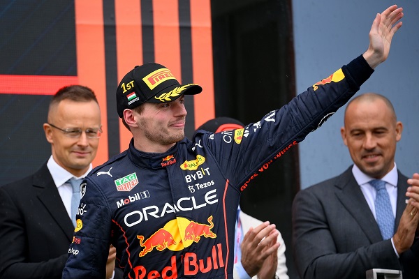 El neerlandés Max Verstappen (Red Bull) reforzó este domingo su ventaja al frente del Mundial de Fórmula Uno al ganar el Gran Premio de Hungría, el decimotercero del campeonato, que se disputó este domingo en el Hungaroring, el circuito de las afueras de Budapest; donde los españoles Carlos Sainz (Ferrari) y Fernando Alonso (Alpine), acabaron cuarto y octavo, respectivamente, y el mexicano Sergio Pérez (Red Bull) concluyó quinto.
