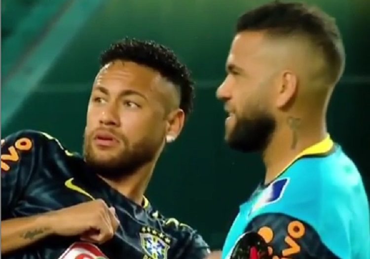 Neymar observó un insecto sobre la cabeza de Alves y procedió a retirarlo.