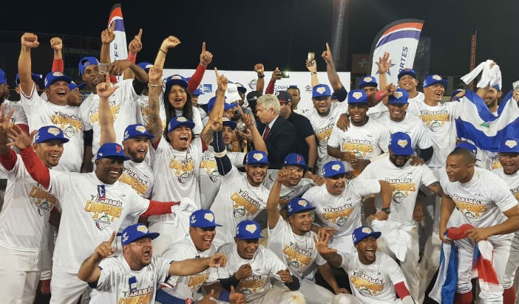 Los Toros de Herrera celebran el título ganado en el Rod Carew. Foto Caribe Béisbol