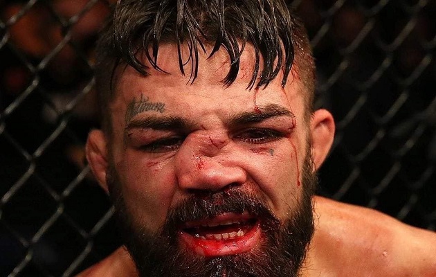 Mike Perry recibió un rodillazo que le fracturó la nariz.