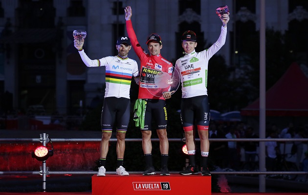 Roglic, de 29 años, cruzó la meta en Cibeles como vencedor final, encabezando la fiesta eslovena, ya que la tercera del podio se la quedó su compatriota de 20 años Tadej Pogacar (UAE Emirates). Entre ambos el español Alejandro Valverde, de 39 años, quien alcanzó vestido con el maillot arcoìris de campeón mundial un segundo puesto que le permite sentirse "muy orgulloso".