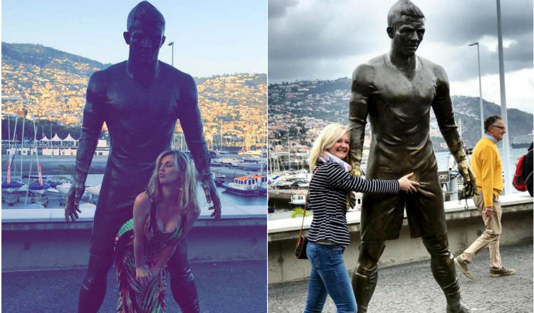 Pulen entrepierna de la estatua de Cristiano Ronaldo