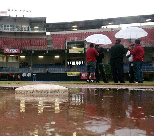 La lluvia que cayó el pasado miércoles en Santiago de Veraguas dejó en malas condiciones el terreno de juego del recién inaugurado Estadio Omar Torrijos, lo que motivó que el séptimo partido de la Serie Final del béisbol Mayor se suspendiera.