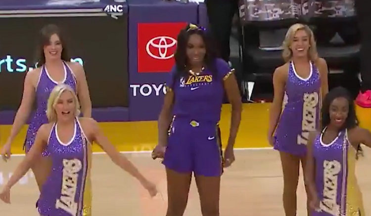 Serena Williams y Rob Gronkowski, porristas de los Lakers