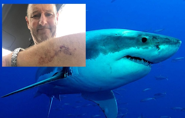 El hombre se encontraba tranquilamente surcando las aguas de la playa Pauanui, a las afueras de Auckland, cuando el animal lo atacó.