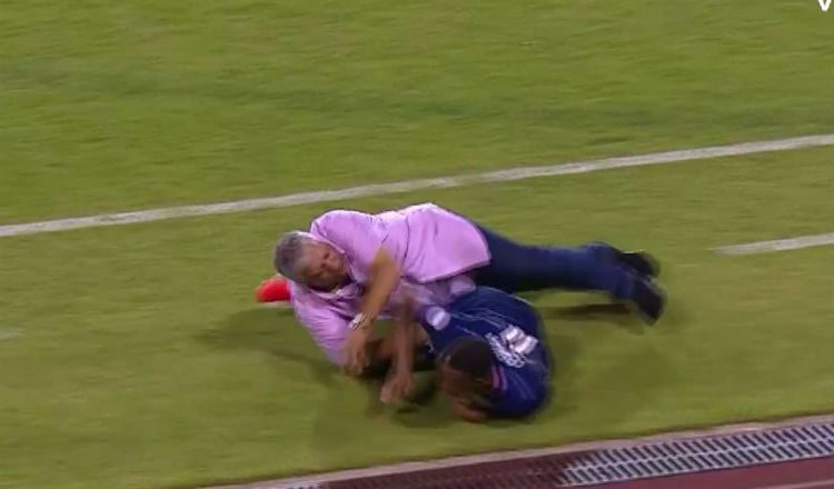 Willie Clemons se chocó con Américo Gallego y lo mandó al césped. ¡El profe ya está bien, solo fue un susto!