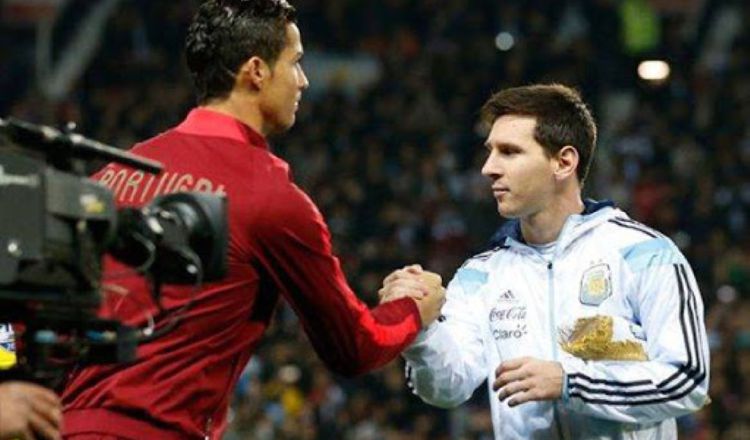 Cristiano Ronaldo y Messi se saludan. Foto:AP