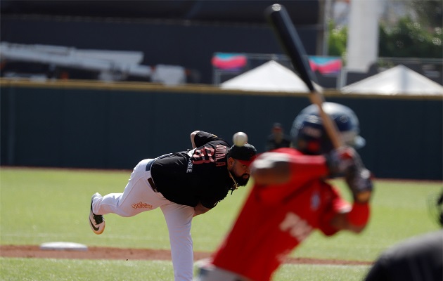 El cubano Yoanys Quiala de los Tomateros no dio tregua a la ofensiva panameña de los Astronautas. Foto:EFE