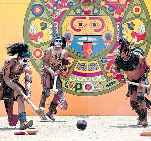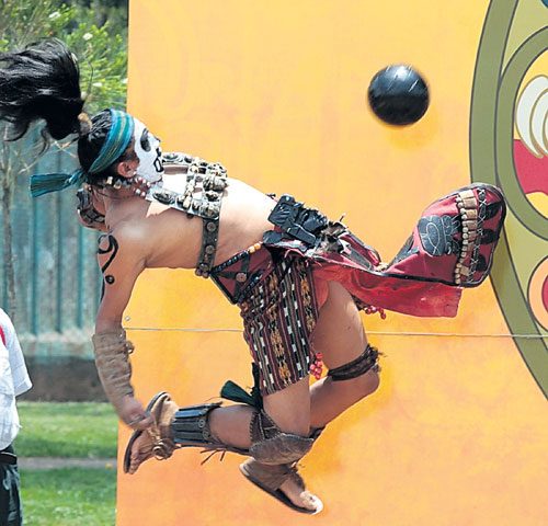 Divididos en dos equipos, su objetivo es meter la pelota por un aro elevado usando los antebrazos, caderas y rodillas. Otra variante también demostrada en Quito es una especie de hockey que se practica con una bola en llamas.