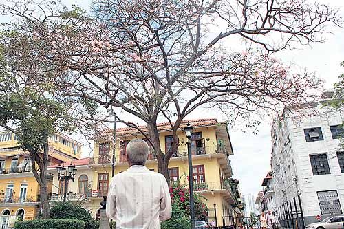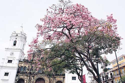 En una mirada natural de hermosas flores rosadas, que caen al suelo y que son contempladas por la presencia de las palomas, se observa un llamativo árbol de nombre guayacán real, árbol este que embellece el parque tras la mirada de los visitantes que pasan por Catedral. Este árbol es el rey e icono de los árboles con el mayor de los orgullos. Su majestad Guayacán Real es un árbol que se encuentra en muchos países del mundo incluyendo a Panamá.