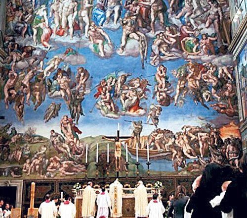 Miguel Ángel es uno de los pintores más famosos de la Historia, pero él se consideraba escultor y, sin embargo, dedicó más de cuatro años a pintar la bóveda (1508-1512) y, dos décadas después inició, en la pared del altar, "El Juicio Final" (1535-1541).
