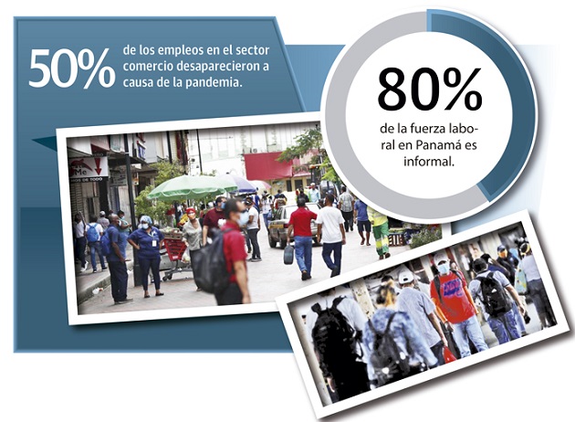 El impacto de la pandemia de coronavirus en el sector laboral fue drástico en Panamá. Los estudios sostienen que hasta septiembre 2021 casi la mitad (49%) de los empleos formales que había en el sector privado antes de la pandemia desaparecieron, mientras que, el 12% de los empleos que habían se encuentran suspendidos.