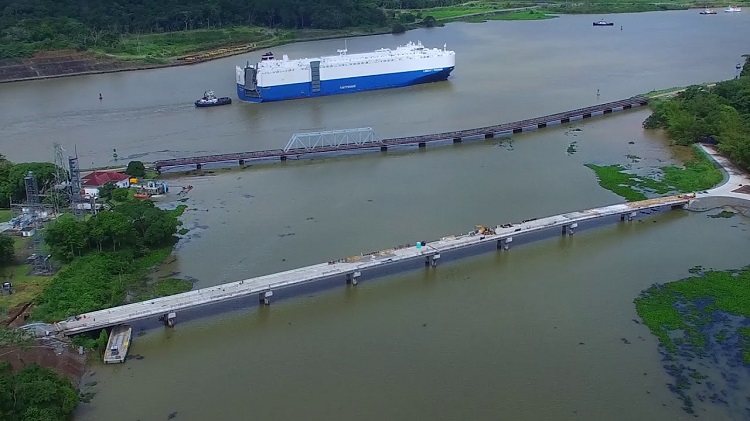 Puente de acceso a Gamboa, que pasa sobre el lago Gatún. El antiguo puente es usado por el ferrocarril. Foto: Cortesía ACP