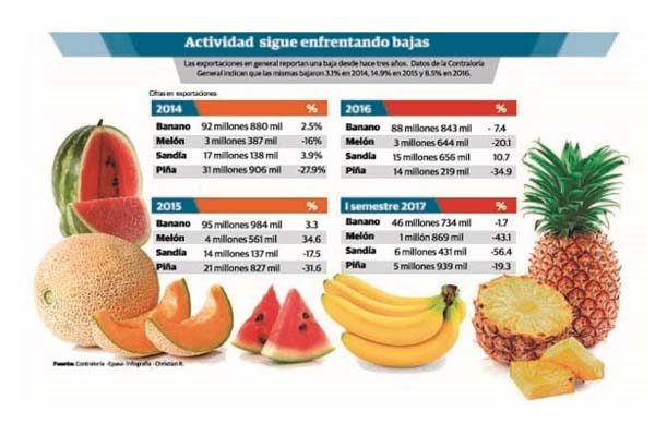 La falta de apoyo por parte de las autoridades ha generado que la exportación de productos como melón, sandía y piña registre bajas considerables.