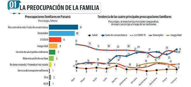 La encuesta de Gallup Panamá hecha para Panamá América reveló que el 31% está preocupado por el alto costo de la vida/costo de canasta básica y el 28% por el desempleo.