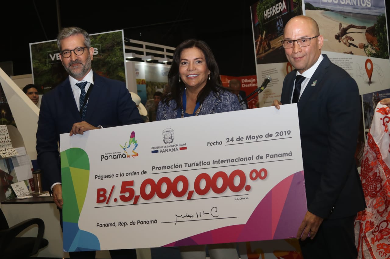 El administrador de la Autoridad de Turismo de Panamá, Gustavo Him, hizo entrega de los primeros 5 millones de dólares al Fondo de Promoción Turística Internacional, en el marco de inauguración de Expo Turismo Internacional 2019, que tiene lugar en el Centro de Convenciones ATLAPA.