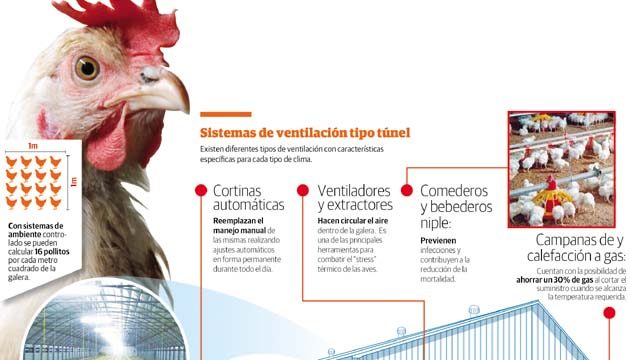 El veterinario especialista en pollos de engorde, Juan Carlos Ojeda, aseguró que estos sistemas también ayudan a una mayor conversión alimenticia y menos problemas metabólicos en los animales.