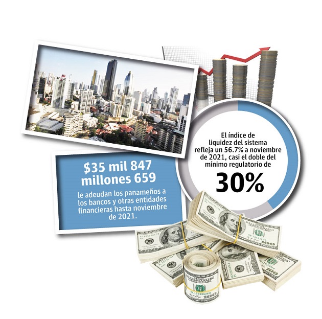 Cifras de la Asociación Panameña de Crédito (APC), revelan que los panameños le adeudan a las entidad bancarias y otras industrias la suma de $35 mil 847 millones 659 hasta noviembre de 2021.