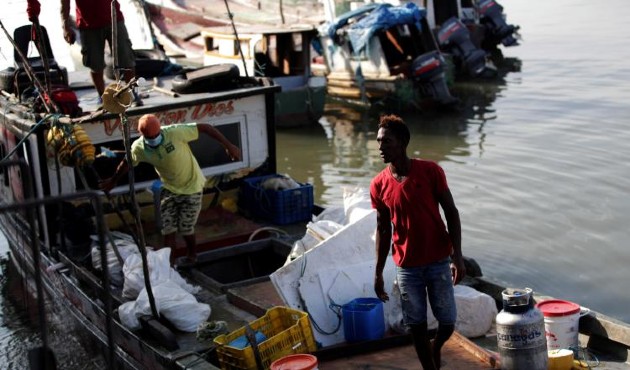 Pescadores desembarcan atún en el muelle multipropósito en la ciudad de Panamá en el inicio de su reactivación económica gradual. EFE