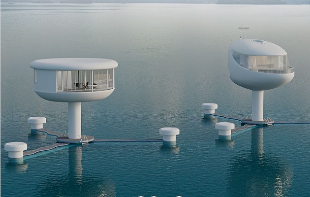 El modelo estilo cápsula tiene una habitación con capacidad para dos personas y utiliza unos 1.688 pies cúbicos de tubo de acero para permitir que las casas floten a 2,2 metros sobre las olas. También cuentan con 55 pies cuadrados de vistas panorámicas y enfoques al océano de 360 grados.