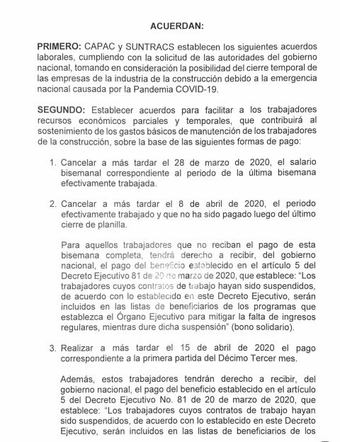 Coronavirus en Panamá: Capac y Suntracs acuerdan cerrar proyectos y obras de construcción