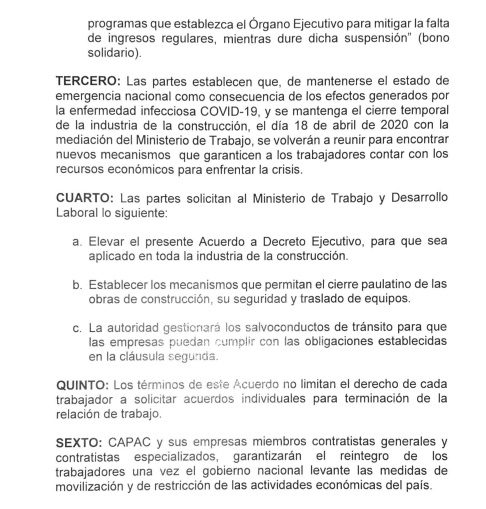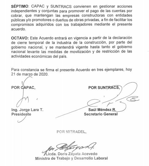El documento que también lleva la firma de la ministra de Trabajo, Doris Zapata, exige que a más tardar el 15 de abril de 2020 se les haga el pago correspondiente a la primera partida del décimo tercer mes.