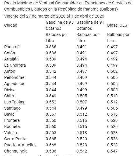 Coronavirus en Panamá: Precios de los combustibles en Panamá caen hasta un 28 por ciento y se revisarán cada siete días