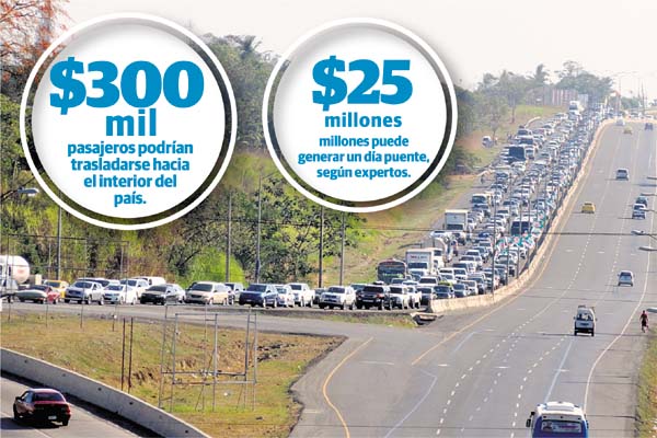 Cálculos del presidente de la Asociación Panameña de Operadores de Turismo (Apotur), Ernesto Orillac, detallan que en un día puente puede llegar a ejercer fácilmente $25 millones por día, es decir, que en tres días la cifra puede oscilar entre $75 millones y $100 millones.